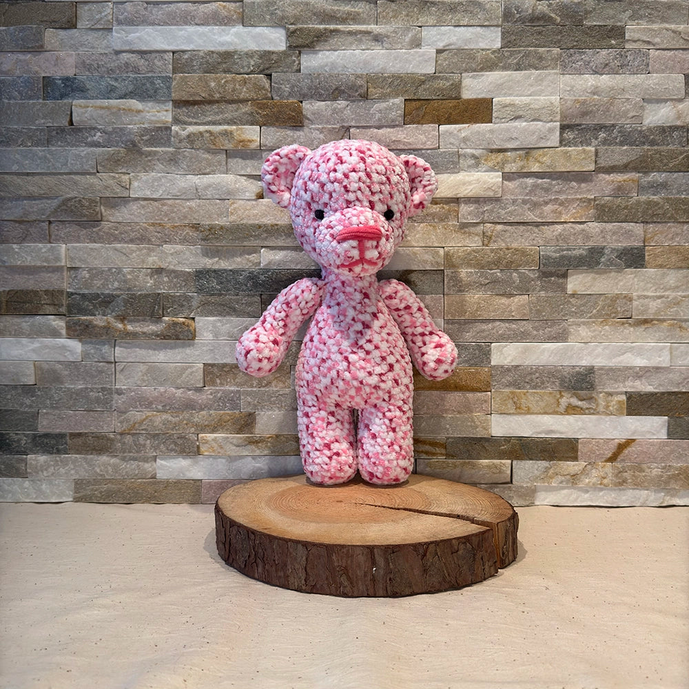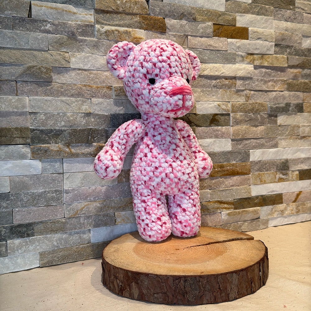 Teddy Lou est un doudou unique, entièrement fait main. Chaque pièce est crochetée avec soin, assemblée une à une, puis nalisée par la broderie de ses yeux et de sa bouille expressive. Ce travail minutieux, réalisé en 4 heures et 30 minutes dans mon atelier, offre un doudou aussi beau que réconfortant.
